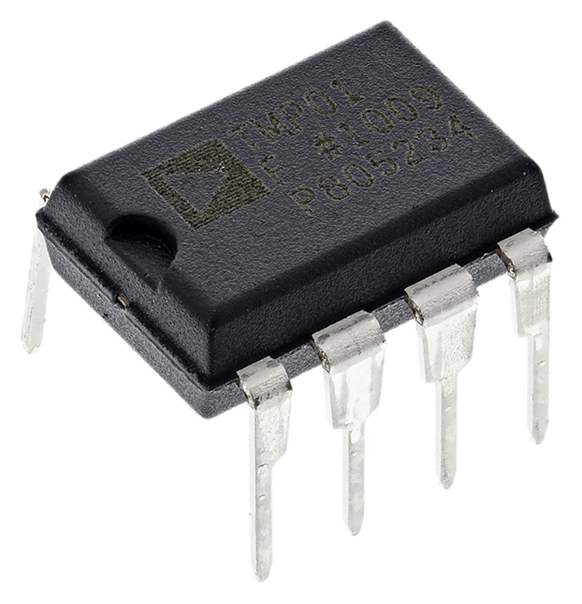 This is Temperature Sensor -55 → +150 °C ±1°C Voltage PDIP 8-Pin manufactured by Analog Devices. The manufacturer part number is TMP01FPZ. It has 13.2 v maximum operating supply voltage. The given dimensions of the product include 9.27 x 6.35 x 3.3mm. The product is available in through hole configuration. The product has -55 → +150 °c of operating temperature range. While its minimum operating supply voltage is 4.5 v. Furthermore, it has acmos, ttl output. In addition, the height is 3.3mm. Furthermore, the product is 6.35mm wide. Its accurate length is 9.27mm. Its sensor is for temperature function . Its sensor gain is about 5mv/k . It is a type of voltage interface. Whereas, the minimum operating temperature of the product is -55 °c. The package is a sort of pdip. It has a maximum operating temperature of +150 °c. It contains 8 pins. It provides high accuracy of ±1°c.