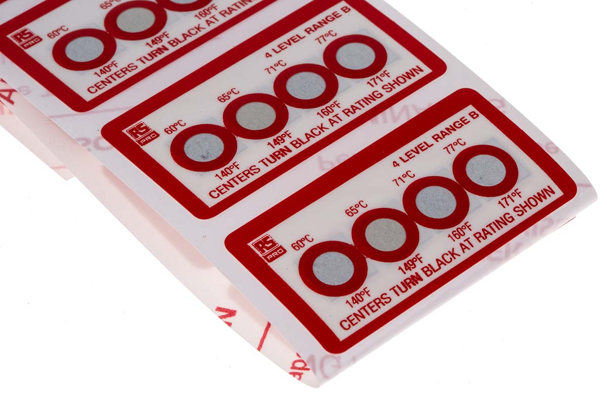 This is Non-Reversible Temperature Sensitive Label 60°C to 77°C 4 Levels manufactured by RS Pro. The manufacturer part number is 286-030. It includes 4 temperature levels . The product has a circle orientation. In addition, it has a standard label about 45mm in length . The product has a reversibility feature no . It has a maximum 77°c temperature sensitivity . It has 10 labels per product . It has a minimum 60°c temperature sensitivity . Its label is 23mm in width .