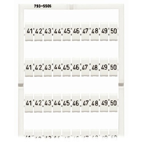 This is 793 Marker Card for use with for use with Terminal Blocks manufactured by WAGO. The manufacturer part number is 793-5506. The product is highly suitable for terminal block. The product 793, is a highly preferred choice for users. It is a type of marker card accessory. The product is available in snap-on configuration.