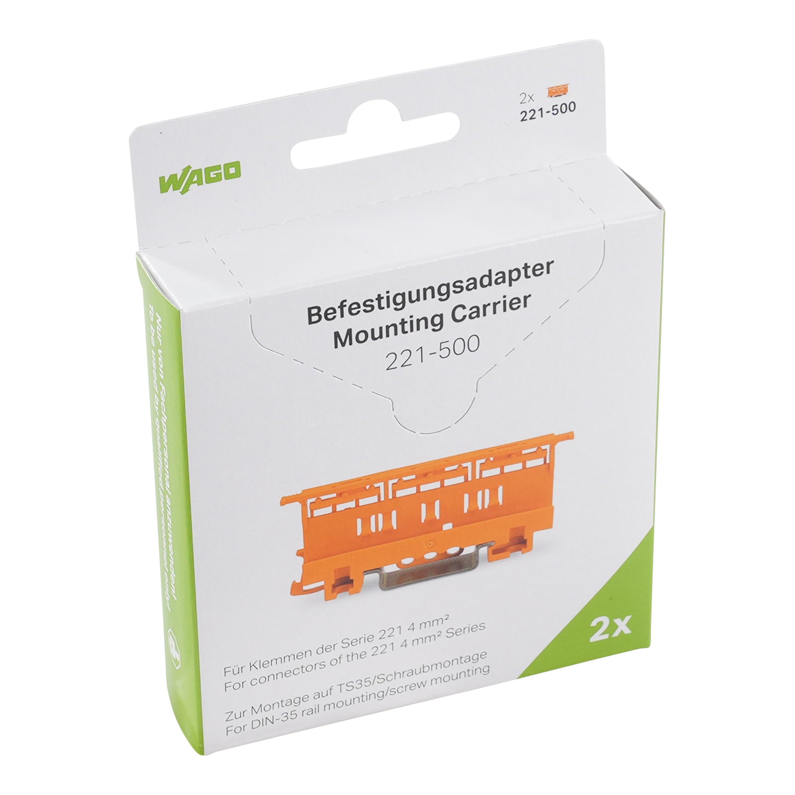 This is 221 Mounting Carrier for use with Terminal Bloack manufactured by WAGO. The manufacturer part number is 221-500/995-002. The product is highly suitable for terminal bloack. The product 221, is a highly preferred choice for users. Concerning wire's size, it is 4 mm². It is a type of mounting carrier accessory. The product is available in din rail mount, screw mount configuration.