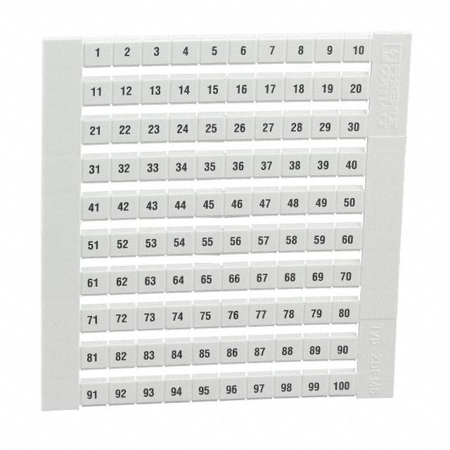 This is manufactured by Phoenix Contact. The manufacturer part number is 0800284. The product is highly suitable for terminal block. The product zbfm 6/wh.lgs:1-100, is a highly preferred choice for users. It is a type of terminal marker accessory. It is assigned with possible HTSUS value of 8544.42.9090. It is shipped in bulk package . It has a classic white colour. The product is rohs3 compliant. In addition, it is reach unaffected. Its typical moisture sensitivity level is 1 (unlimited). The product is suitable for use with 6.2mm wide terminal blocks. It has a long 4 weeks standard lead time. It comes in label, snap in configuration. Legend Information: numbers, 1 through 100. The product is designated with the ear99 code number.