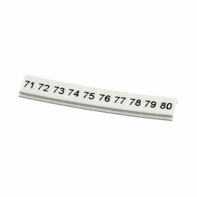 This is manufactured by Phoenix Contact. The manufacturer part number is 0801406:0071. It is assigned with possible HTSUS value of 3926.90.9985. The product is rohs3 compliant. It has a classic white colour. The product clipline, is a highly preferred choice for users. In addition, it is reach unaffected. Its typical moisture sensitivity level is 1 (unlimited). In addition, bulk is the available packaging type of the product. The product is suitable for use with 3.5mm wide terminal blocks. It has a long 4 weeks standard lead time. The phoenix contact's product offers user-desired applications. It comes in label, snap in configuration. Legend Information: numbers, 71 through 80. The product is designated with the ear99 code number.