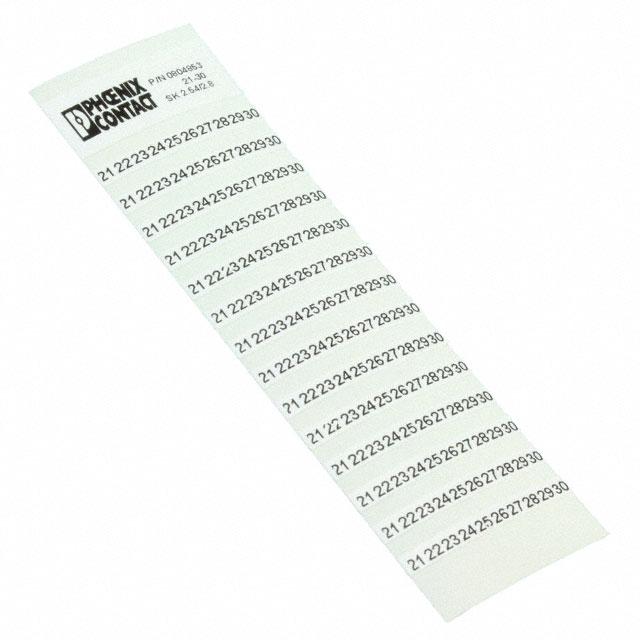 This is manufactured by Phoenix Contact. The manufacturer part number is 0804853:0021. It is assigned with possible HTSUS value of 3926.90.9985. It is shipped in bulk package . It has a classic white colour. The product clipline sk, is a highly preferred choice for users. The product is rohs3 compliant. In addition, it is reach unaffected. Its typical moisture sensitivity level is 1 (unlimited). The product is suitable for use with clipline series. Moreover, the product is 0.100" (2.54mm). It has a long 4 weeks standard lead time. It comes in label, adhesive configuration. Legend Information: numbers, 21 through 30. The product is designated with the ear99 code number.