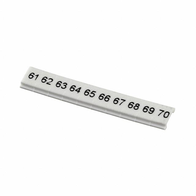 This is manufactured by Phoenix Contact. The manufacturer part number is 0801406:0061. It is assigned with possible HTSUS value of 3926.90.9989. It has a classic white colour. The product clipline, is a highly preferred choice for users. The product is rohs3 compliant. In addition, it is reach unaffected. Its typical moisture sensitivity level is 1 (unlimited). In addition, bulk is the available packaging type of the product. The product is suitable for use with 3.5mm wide terminal blocks. It has a long 4 weeks standard lead time. The phoenix contact's product offers user-desired applications. It comes in label, snap in configuration. Legend Information: numbers, 61 through 70. The product is designated with the ear99 code number.