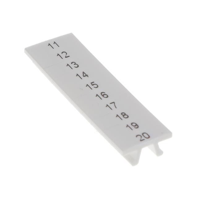 This is manufactured by Phoenix Contact. The manufacturer part number is 0801405:0011. It is assigned with possible HTSUS value of 3926.90.9985. It is shipped in bulk package . It has a classic white colour. The product is rohs compliant. Its typical moisture sensitivity level is 1 (unlimited). The product is suitable for use with 3.5mm wide terminal blocks. It has a long 6 weeks standard lead time. It comes in label, snap in configuration. Legend Information: numbers, 11 through 20. The product is designated with the ear99 code number.