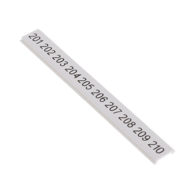 This is manufactured by Phoenix Contact. The manufacturer part number is 0808671:0201. The product is highly suitable for terminal block. The product zbf, is a highly preferred choice for users. It is a type of marker strip accessory. The product is available in snap pin mount configuration. It is assigned with possible HTSUS value of 3926.90.9989. It has a classic white colour. The product clipline, is a highly preferred choice for users. The product is rohs compliant. Its typical moisture sensitivity level is 1 (unlimited). In addition, bulk is the available packaging type of the product. The product is suitable for use with 5.2mm wide terminal blocks. It has a long 6 weeks standard lead time. The phoenix contact's product offers user-desired applications. It comes in label, snap in configuration. Legend Information: numbers, 201 through 210. The product is designated with the ear99 code number.