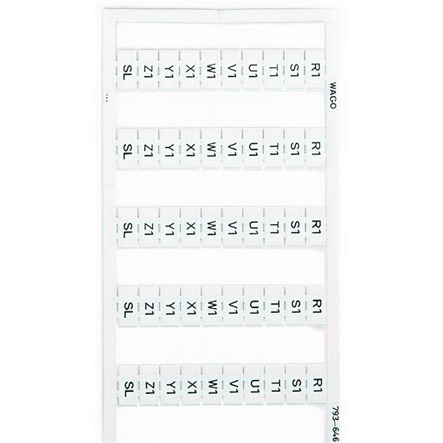 This is manufactured by WAGO Corporation. The manufacturer part number is 793-646. It is assigned with possible HTSUS value of 3926.90.9985. The product is rohs3 compliant. It has a classic white colour. The product wmb, is a highly preferred choice for users. Its typical moisture sensitivity level is not applicable. In addition, box is the available packaging type of the product. The product is suitable for use with 5mm wide terminal blocks. It has a long 12 weeks standard lead time. The wago corporation's product offers user-desired applications. It comes in label, snap in configuration. Legend Information: r1 through z1, sl. The product is designated with the ear99 code number.