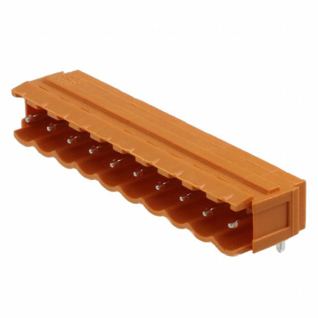 This is manufactured by Weidmuller. The manufacturer part number is 1580940000. It features 10 position terminal block header, male pins, shrouded (4 side) 0.197" (5.00mm) 90°, right angle through hole. Moreover, it has solder terminal style. The product also features robust polybutylene terephthalate (pbt) housing material. The product has -50°c ~ 100°c operating temperature range. It comes in header, male pins, shrouded (4 side) configuration. The product carries possible position value of 10. The typical tail length of the product is [Contact Tail Lenght]. 0.330" (8.38mm) of insulation height. It carries ul94 v-0 of material flammability rating. The weidmuller's product offers user-desired applications. The product carries 1 levels. An IEC current of 18a. The product has a 90°, right angle of a header orientation. While 300v is the typical voltage of the product. The mating finish of the contact is tin. The nominal voltage of the product is 400v. It is IP rated with ip20. The product is available in through hole configuration. It has a classic orange colour. The product omnimate sl, is a highly preferred choice for users. It has 10 positions each level. In addition, bulk is the available packaging type of the product. The typical current includes 15a. Moreover, the product is 0.197" (5.00mm). The product is made from sturdy copper alloy materials.
