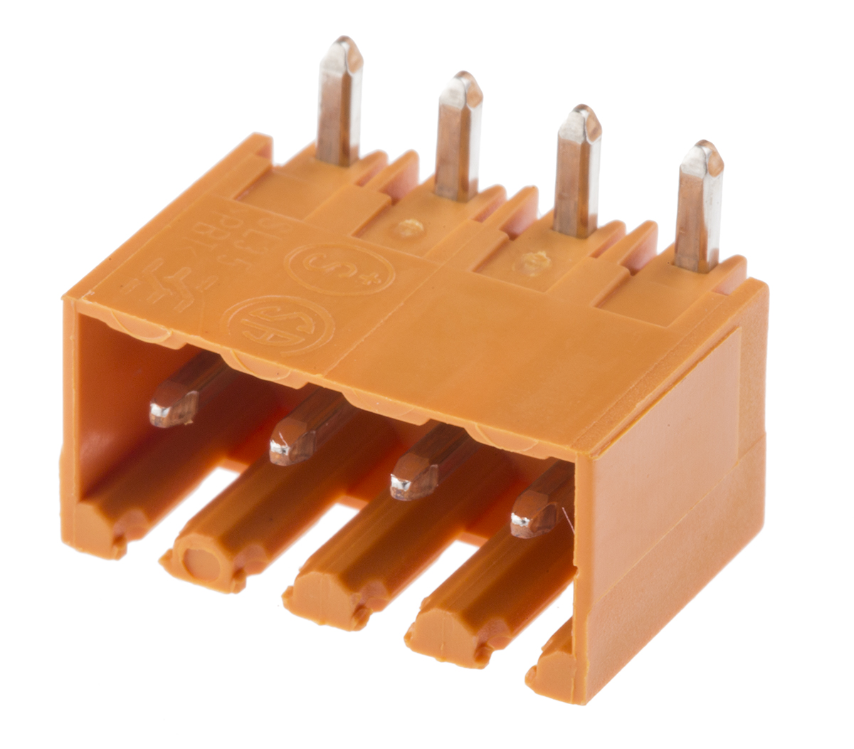 This is manufactured by Weidmüller. The manufacturer part number is 1605090000. The product has a current rating of 17.0a. The product is available in through hole configuration. Moreover, the product has a nominal 320.0 v voltage rating. The product omnimate sl, is a highly preferred choice for users. It has right angle body orientation. It allows solder termination method. It comes in 1 of rows. Moreover, the product is 3.5mm. The product contains 4 contacts. The product is made from sturdy copper alloy materials. It has typical 16 weeks of manufacturer standard lead time. It features 4 position terminal block header, male pins, shrouded (4 side) 0.138" (3.50mm) 90°, right angle through hole. Moreover, it has solder terminal style. The product also features robust polybutylene terephthalate (pbt) housing material. The product has -50°c ~ 100°c operating temperature range. It comes in header, male pins, shrouded (4 side) configuration. The product carries possible position value of 4. The typical tail length of the product is [Contact Tail Lenght]. 0.298" (7.57mm) of insulation height. It carries ul94 v-0 of material flammability rating. The typical current includes 10a. The product carries 1 levels. An IEC current of 17a. The product has a 90°, right angle of a header orientation. While 300v is the typical voltage of the product. The mating finish of the contact is tin. The nominal voltage of the product is 320v. It is IP rated with ip10. It has a classic orange colour. The product omnimate sl, is a highly preferred choice for users. It has 4 positions each level. In addition, bulk is the available packaging type of the product. Moreover, the product is 0.138" (3.50mm). The weidmüller's product offers user-desired applications.