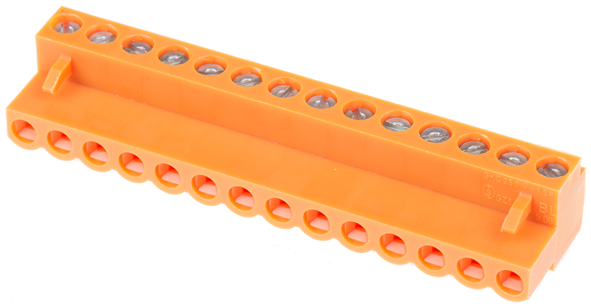 This is manufactured by Weidmüller. The manufacturer part number is 1716440000. The product contains 14 contacts. The product has a current rating of 14a. The product is available in cable mount configuration. Moreover, the product has a nominal 400 v voltage rating. The product bl, is a highly preferred choice for users. It has a decent orange colour. The product is made from highly stable and reliable nylon. It allows screw down termination method. The high-quality tin is used as contact plating material. Moreover, the product is 5.08mm. Concerning wire's size, it is 26 → 14 awg. The product is made from sturdy copper tin alloy materials. It features 14 position terminal block plug, female sockets 0.200" (5.08mm) 180° free hanging (in-line). A 0.2-1.5mm² of wire gauge. Moreover, it has screw - leaf spring, wire guard terminal style. The product also features robust polyamide (pa), nylon housing material. The product has -50°c ~ 100°c operating temperature range. It is available in screw size of m2.5. The typical length of the wire strip is 6mm. It comes in plug, female sockets configuration. The product carries possible position value of 14. It also a 180° plug wire entry. 0.492" (12.50mm) of insulation height. It carries ul94 v-0 of material flammability rating. The weidmüller's product offers user-desired applications. An IEC current of 14a. The product carries 1 levels. While 14-26 awg is its range or wire gauge. While 300v is the typical voltage of the product. It carries torque - screw values of 0.4-0.5 nm (3.5-4.4 lb-in). The mating finish of the contact is tin. The nominal voltage of the product is 400v. The splendid features of the product include retention latches (non-wire side). The product is available in free hanging (in-line) configuration. It has a classic orange colour. The product omnimate bl, is a highly preferred choice for users. It has 14 positions each level. In addition, bulk is the available packaging type of the product. The typical current includes 10a. Moreover, the product is 0.200" (5.08mm). The product is made from sturdy copper alloy materials.