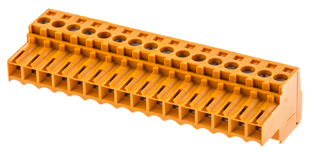 This is manufactured by Weidmüller. The manufacturer part number is 1597500000. The product contains 16 contacts. The product has a current rating of 17a. The product is available in cable mount configuration. Moreover, the product has a nominal 320 v voltage rating. The product bl, is a highly preferred choice for users. It has a decent orange colour. The product is made from highly stable and reliable pbt. It allows screw down termination method. The high-quality tin is used as contact plating material. Moreover, the product is 3.5mm. Concerning wire's size, it is 28 → 14 awg. The product is made from sturdy copper alloy materials. It has typical 12 weeks of manufacturer standard lead time. It features 16 position terminal block plug, female sockets 0.138" (3.50mm) 180° free hanging (in-line). A 0.2-1.5mm² of wire gauge. Moreover, it has screw - clamping yoke (tension sleeve) terminal style. The product also features robust polybutylene terephthalate (pbt) housing material. The product has -50°c ~ 100°c operating temperature range. It is available in screw size of m2. The typical length of the wire strip is 6mm. It comes in plug, female sockets configuration. The product carries possible position value of 16. It also a 180° plug wire entry. 0.512" (13.00mm) of insulation height. It carries ul94 v-0 of material flammability rating. The weidmüller's product offers user-desired applications. An IEC current of 17a. The product carries 1 levels. While 14-28 awg is its range or wire gauge. While 300v is the typical voltage of the product. It carries torque - screw values of 0.2-0.25 nm (1.7-2.2 lb-in). The mating finish of the contact is tin. The nominal voltage of the product is 320v. It is IP rated with ip20. The product is available in free hanging (in-line) configuration. It has a classic orange colour. The product omnimate bl, is a highly preferred choice for users. It has 16 positions each level. The typical current includes 10a. In addition, bulk is the available packaging type of the product. Moreover, the product is 0.138" (3.50mm).