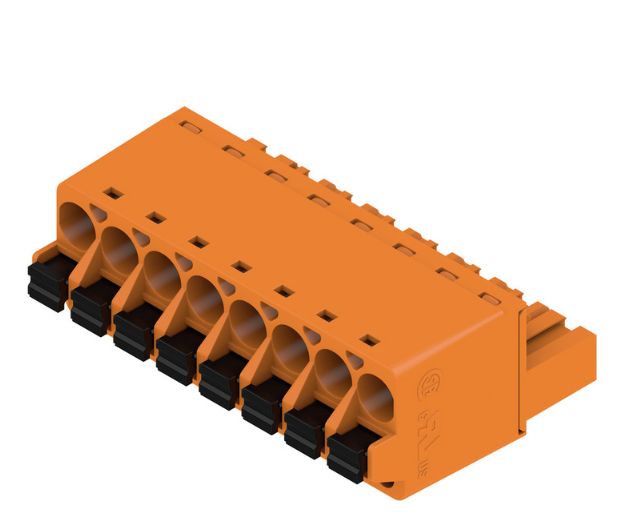 This is manufactured by Weidmüller. The manufacturer part number is 1013750000. The product has a current rating of 14a. The product is available in cable mount configuration. Moreover, the product has a nominal 400 v voltage rating. The product bl 5.08, is a highly preferred choice for users. It has a decent orange colour. The product is made from highly stable and reliable nylon. It allows push in termination method. It comes in 1 of rows. Moreover, the product is 5.08mm. The product contains 8 contacts. It has straight body orientation. The product is made from sturdy copper alloy materials. It has typical 16 weeks of manufacturer standard lead time. It features 8 position terminal block plug, female sockets 0.200" (5.08mm) 180° free hanging (in-line). A 0.2-2.5mm² of wire gauge. Moreover, it has screwless - leg spring, push-in spring terminal style. The product also features robust polybutylene terephthalate (pbt) housing material. The product has -50°c ~ 100°c operating temperature range. The typical length of the wire strip is 10mm. It comes in plug, female sockets configuration. The product carries possible position value of 8. It also a 180° plug wire entry. 0.559" (14.20mm) of insulation height. It carries ul94 v-0 of material flammability rating. The typical current includes 18.5a. An IEC current of 24a. The product carries 1 levels. While 12-26 awg is its range or wire gauge. While 300v is the typical voltage of the product. The mating finish of the contact is tin. The nominal voltage of the product is 400v. It is IP rated with ip20. The splendid features of the product include retention latches (non-wire side). The product is available in free hanging (in-line) configuration. It has a classic orange colour. The product omnimate bl, is a highly preferred choice for users. It has 8 positions each level. In addition, box is the available packaging type of the product. Moreover, the product is 0.200" (5.08mm). The weidmüller's product offers user-desired applications.