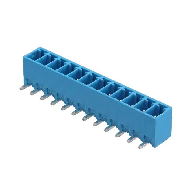 This is manufactured by CUI Inc.. The manufacturer part number is TBP02R1-381-12BE. It has typical 6 weeks of manufacturer standard lead time. It features 12 position terminal block header, male pins, shrouded (4 side) 0.150" (3.81mm) 90°, right angle through hole. Moreover, it has solder terminal style. The product also features robust polyamide (pa66), nylon 6/6 housing material. The product has -40°c ~ 105°c operating temperature range. It comes in header, male pins, shrouded (4 side) configuration. The product carries possible position value of 12. The typical tail length of the product is [Contact Tail Lenght]. 0.284" (7.21mm) of insulation height. It carries ul94 v-0 of material flammability rating. The cui inc.'s product offers user-desired applications. The product carries 1 levels. An IEC current of 7a. The product has a 90°, right angle of a header orientation. While 300v is the typical voltage of the product. The mating finish of the contact is tin. The nominal voltage of the product is 250v. The product is available in through hole configuration. It has a classic blue colour. The product tbp02r1-381, is a highly preferred choice for users. It has 12 positions each level. In addition, bulk is the available packaging type of the product. The typical current includes 8a. Moreover, the product is 0.150" (3.81mm). The product is made from sturdy copper alloy materials.