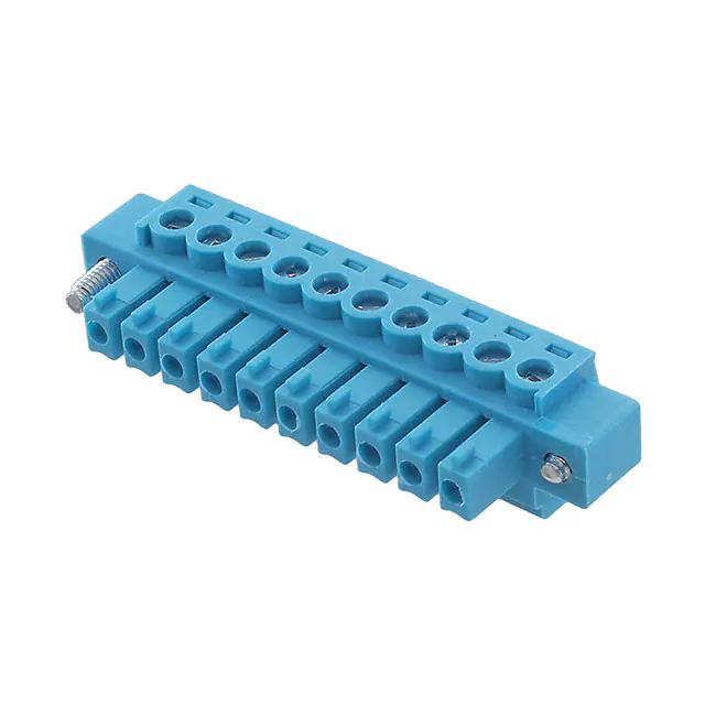 This is manufactured by CUI Devices. The manufacturer part number is TBP02P1W-381-10BE. The product contains 10 contacts. The product is available in screw mount configuration. Moreover, the product is 3.81mm. It has typical 12 weeks of manufacturer standard lead time. It features 10 position terminal block plug, female sockets 0.150" (3.81mm) 180° free hanging (in-line). A 1.5mm² of wire gauge. Moreover, it has screw - leaf spring, wire guard terminal style. The product also features robust polyamide (pa66), nylon 6/6 housing material. The product has -40°c ~ 105°c operating temperature range. It is available in screw size of m2. The typical length of the wire strip is 7mm. It comes in plug, female sockets configuration. The product carries possible position value of 10. It also a 180° plug wire entry. 0.441" (11.20mm) of insulation height. It carries ul94 v-0 of material flammability rating. The cui devices's product offers user-desired applications. An IEC current of 7a. The product carries 1 levels. While 16-28 awg is its range or wire gauge. While 300v is the typical voltage of the product. It carries torque - screw values of 0.2 nm (1.7 lb-in). The mating finish of the contact is nickel. The nominal voltage of the product is 250v. The splendid features of the product include mating flange. The product is available in free hanging (in-line) configuration. It has a classic blue colour. The product tbp02p1w-381, is a highly preferred choice for users. It has 10 positions each level. In addition, bag is the available packaging type of the product. The typical current includes 8a. Moreover, the product is 0.150" (3.81mm). The product is made from sturdy copper alloy materials.