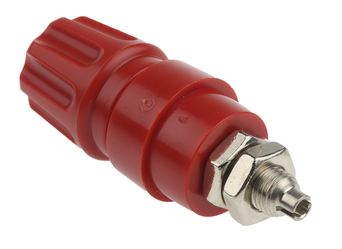 This is 4mm Red Terminal Post 60V dc 63A M6 x 0.75 Thread manufactured by Hirschmann Test & Measurement. The manufacturer part number is 930136101. The product is insulated yes . The product has a current rating of 63a. Moreover, the product has a nominal 60v dc voltage rating. It has about 3.5mm maximum thickness of panel . It has a decent red colour. It has a typical thread size of m6 x 0.75. The product's body is nicely designed from phenolic resin materials. Has a hole diameter of 4mm.