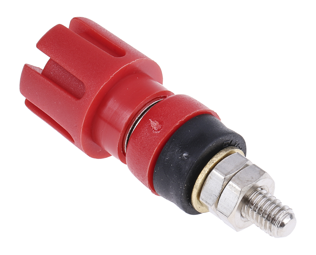 This is 4mm Red Terminal Post 30A 2BA Thread manufactured by RS Pro. The manufacturer part number is 677-8746. The product is insulated yes . The product has a current rating of 30a. It has about 7mm maximum thickness of panel . It has a decent red colour. Its height above panel is approximately 33mm . It has a typical thread size of 2ba. The product's body is nicely designed from glass fibre reinforced nylon, pp materials. Has a hole diameter of 4mm.