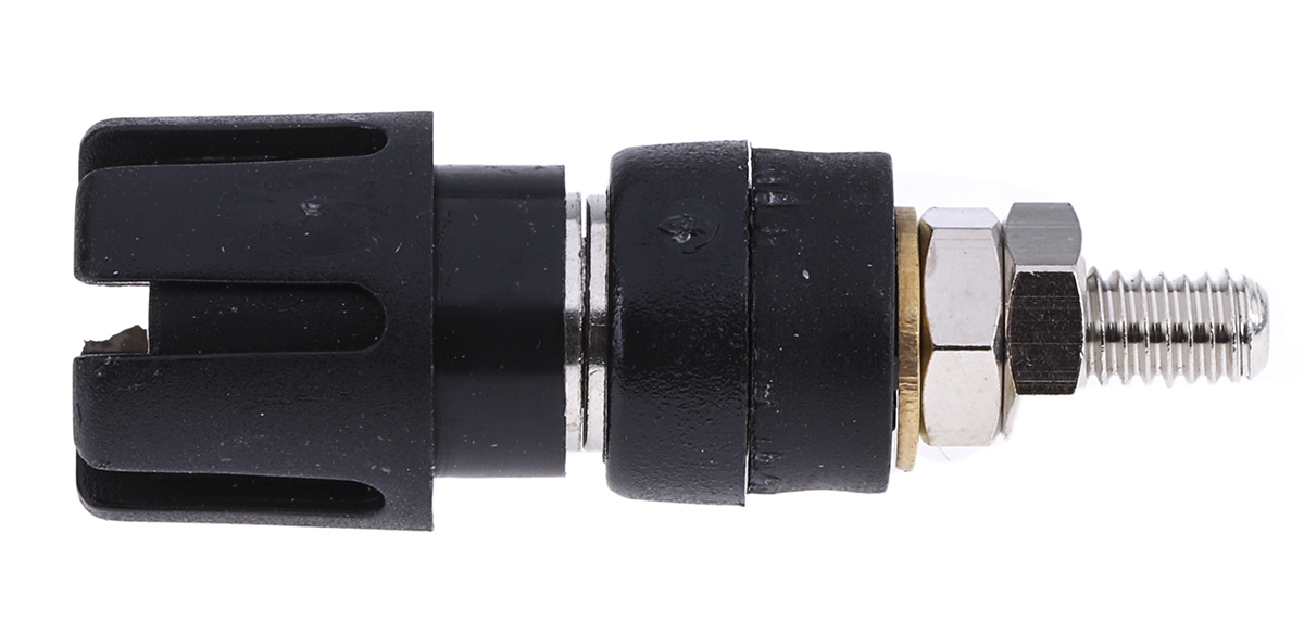 This is 4mm Black Terminal Post 30A 2BA Thread manufactured by RS Pro. The manufacturer part number is 677-8740. The product is insulated yes . The product has a current rating of 30a. It has about 7mm maximum thickness of panel . It has a decent black colour. Its height above panel is approximately 33mm . It has a typical thread size of 2ba. The product's body is nicely designed from glass fibre reinforced nylon, pp materials. Has a hole diameter of 4mm.