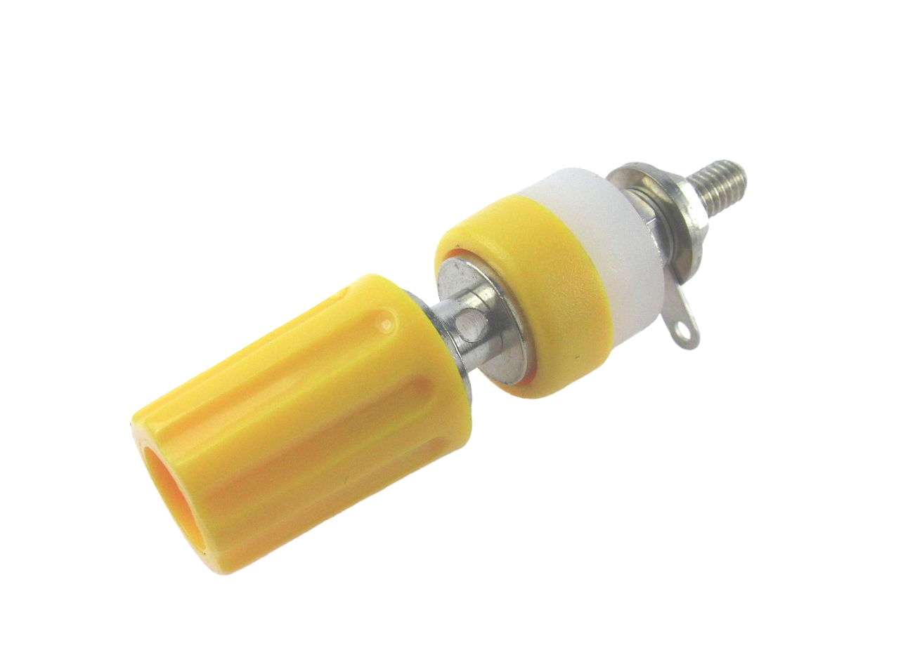 This is 2mm Yellow Terminal Post 60V dc 15A 4BA Thread manufactured by RS PRO. The manufacturer part number is 266-4934. The product has a current rating of 15a. Moreover, the product has a nominal 60v dc voltage rating. It has about 7mm maximum thickness of panel . It has a decent yellow colour. Its height above panel is approximately 30mm . It has a typical thread size of 4ba. The product's body is nicely designed from pp materials. Has a hole diameter of 4mm.
