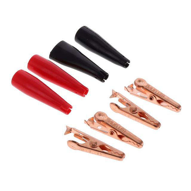 This is manufactured by Mueller Electric Co. The manufacturer part number is 010005. It is rated with aa59466-001. The product is not applicable. It is designed from highly reliable poly-vinyl chloride (pvc) insulating material. It comes in alligator, miniature configuration. It is assigned with possible HTSUS value of 8536.90.4000. The product is made from highly stable and reliable copper. In addition, it is reach unaffected. It is shipped in bulk package . Its typical moisture sensitivity level is 1 (unlimited). Insulation Option: insulated. Its accurate length is 1.100" (27.94mm). The product features crimp or solder termination style. It has a long 2 weeks standard lead time. Additionally, the product's output is 5 a. Available in 2 pair quantity. Equipped with a 0.188" (4.79mm) 3/16" jaw opening. It has a classic black and red colour. The product bu, is a highly preferred choice for users. The product is designated with the ear99 code number.