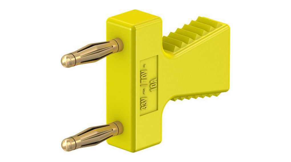 This is Yellow Plug Test Connector Adapter With CuZn contacts and Gold Plated - Socket Size: 2mm manufactured by Staubli. The manufacturer part number is 63.9354-24. Additionally, it has a standard 2mm size plug . In addition, plug is the available "Gender" of the product. It has a decent yellow colour. The socket's size is 2mm. The high-quality gold is used as contact plating material. The product is made from sturdy cuzn materials.