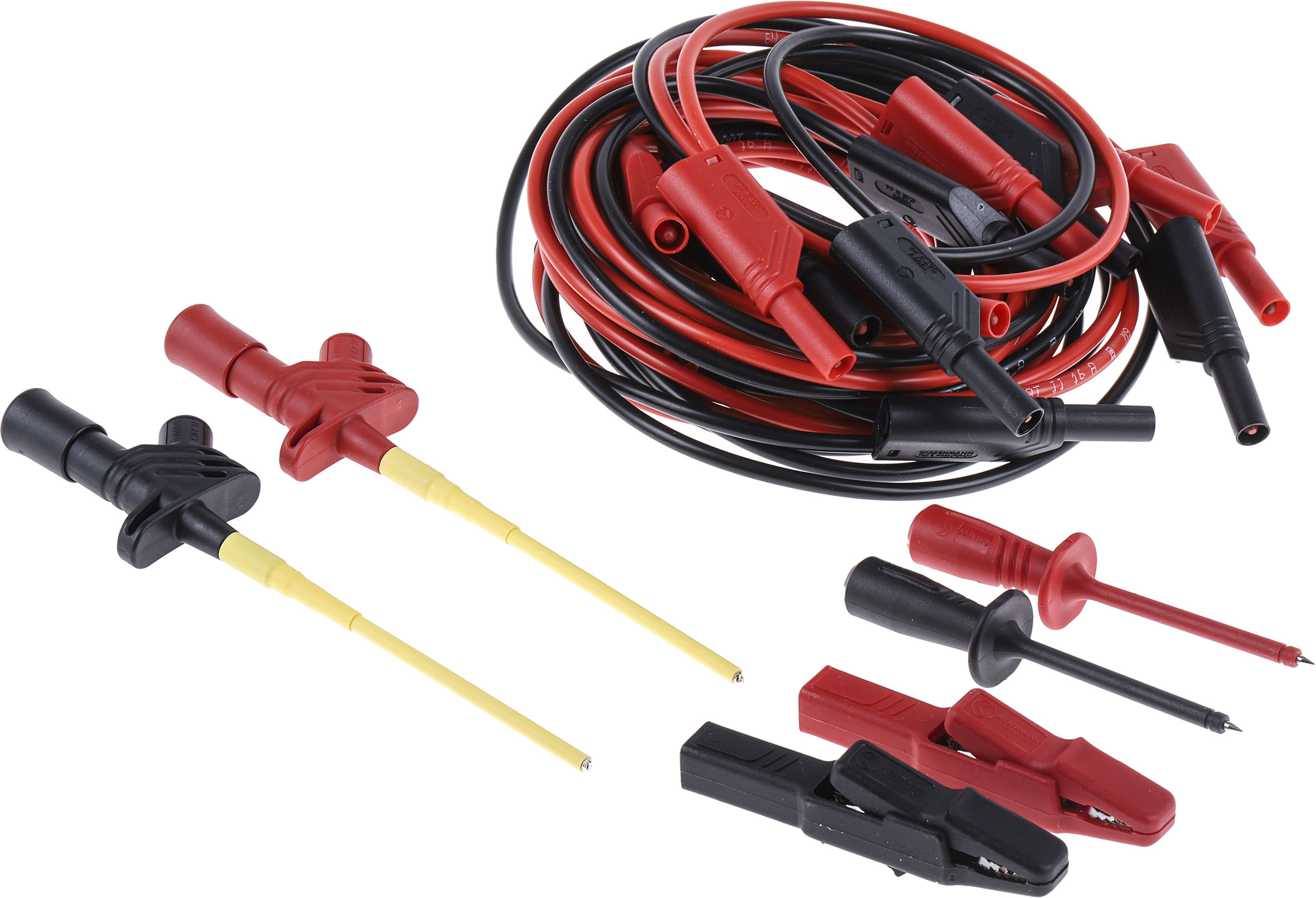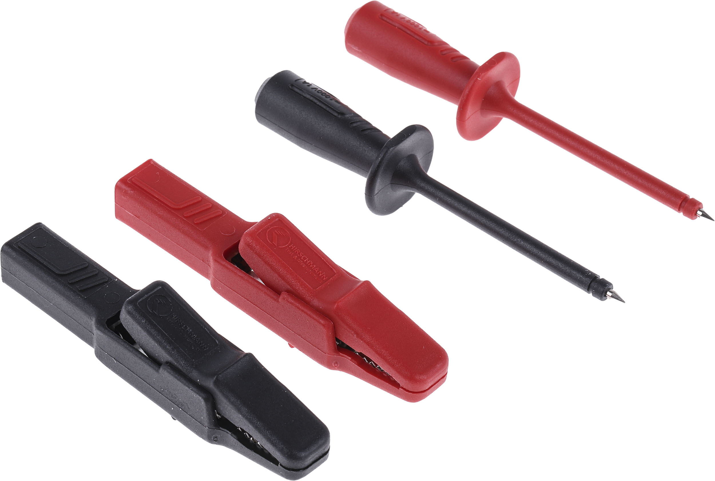 This is Hirschmann Test Lead Kit manufactured by Hirschmann Test & Measurement. The manufacturer part number is 932795001. This versatile kit contents include (3) safety test lead, clamp style test probe, crocodile clip, stainless steel tipped test probe components.