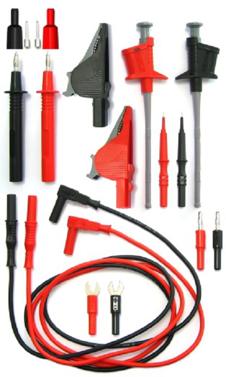 This is Test Lead Kit With Adapters crocodile clip Flexible Test Clip Test leads Test probes manufactured by Electro PJP. The manufacturer part number is 426. This versatile kit contents include adapters, crocodile clip, flexible test clip, test leads, test probes components.