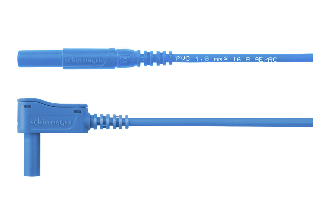 This is safety measuring lead 1000 V CAT III 1 manufactured by Schutzinger. The manufacturer part number is MSWFK A341 / 1 / 50 / BL. The product has a current rating of 16a. Moreover, its safety category level is cat iii . Moreover, the product has a nominal 1kv voltage rating. The lead is 500mm long. It has a decent blue colour. Its safety category voltage is 1000v . It provides robust safety and is complied with cat iii 1000v safety category. It has test lead of 4 mm connector test leads Type . It has a robust pvc insulation material. Whereas, the minimum operating temperature of the product is -10°c. While connector B has a male gender. The product has -10 → +90 °c of operating temperature range. It has a maximum operating temperature of +90°c. Connector A is a male allowing user-desired applications. The product is made from sturdy beryllium copper materials.