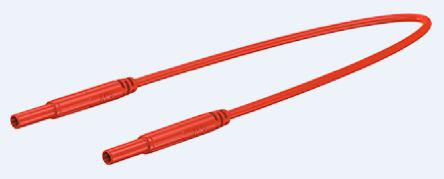 This is Multi Contact 10A 600V Red 1m Lead Length manufactured by Staubli. The manufacturer part number is 65.9174-100-22. Priced to Clear Options - yes. The product has a current rating of 10a. Moreover, its safety category level is cat iii . Moreover, the product has a nominal 600v voltage rating. The lead is 1m long. It has a decent red colour. Its safety category voltage is 600v . It provides robust safety and is complied with cat iii 600v safety category. On the other hand, the connector B has straight orientation. While connector B has a male gender. It has a robust silicone insulation material. The connector A has straight orientation. Connector A is a male allowing user-desired applications. The product is made from sturdy gold-plated materials.