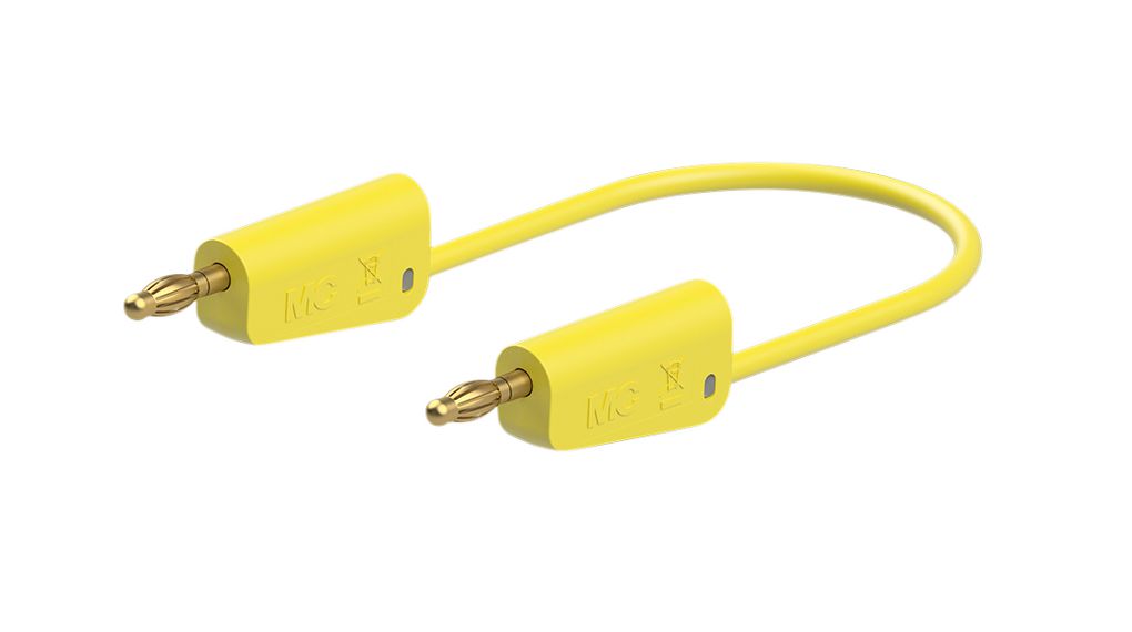 This is Test lead 19A 30V ac Yellow 1m Lead Length manufactured by Staubli. The manufacturer part number is 64.1033-10024. The product has a current rating of 19a. Moreover, the product has a nominal 30 → 60v voltage rating. The lead is 100cm long. It has a decent yellow colour. It has test lead of 4 mm connector test leads Type . Connector A is a plug allowing user-desired applications.