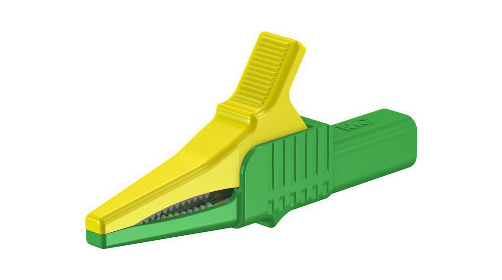 This is Crocodile Clip Lead 32A 1kV Green/Yellow manufactured by Staubli. The manufacturer part number is 66.9755-20. It has a decent green/yellow colour. The product has a current rating of 32a. Moreover, the product has a nominal 1kv voltage rating.