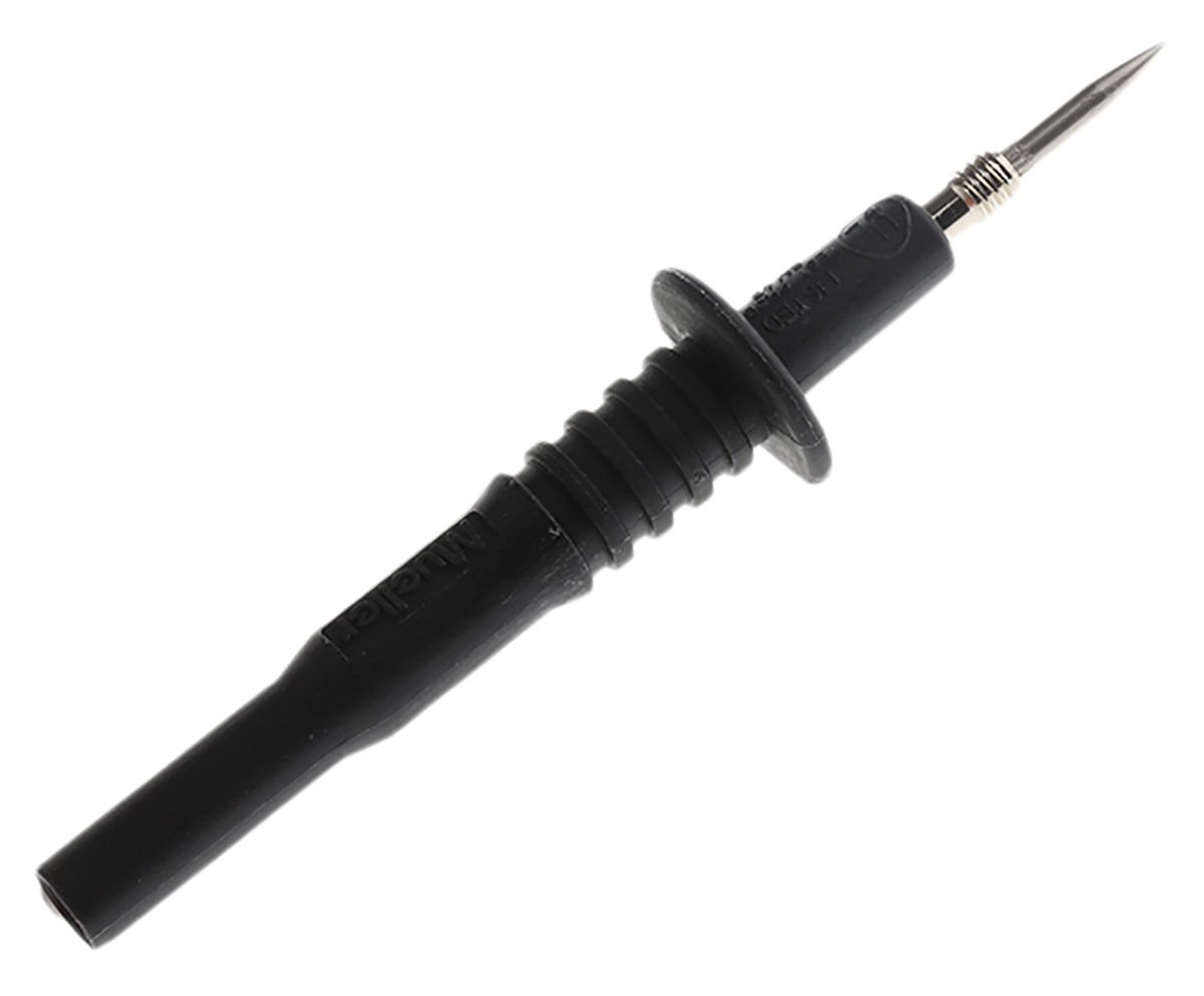This is Mueller Fixed Test Probe 1kV 20A 2mm Tip Size manufactured by Mueller Electric. The manufacturer part number is BU-26106-0. The tip is 2mm in size. The product has a current rating of 20a. Moreover, the product has a nominal 1kv voltage rating. It has a fixed type probe tip . It has a decent black colour. The tip is constructed from stainless steel materials.
