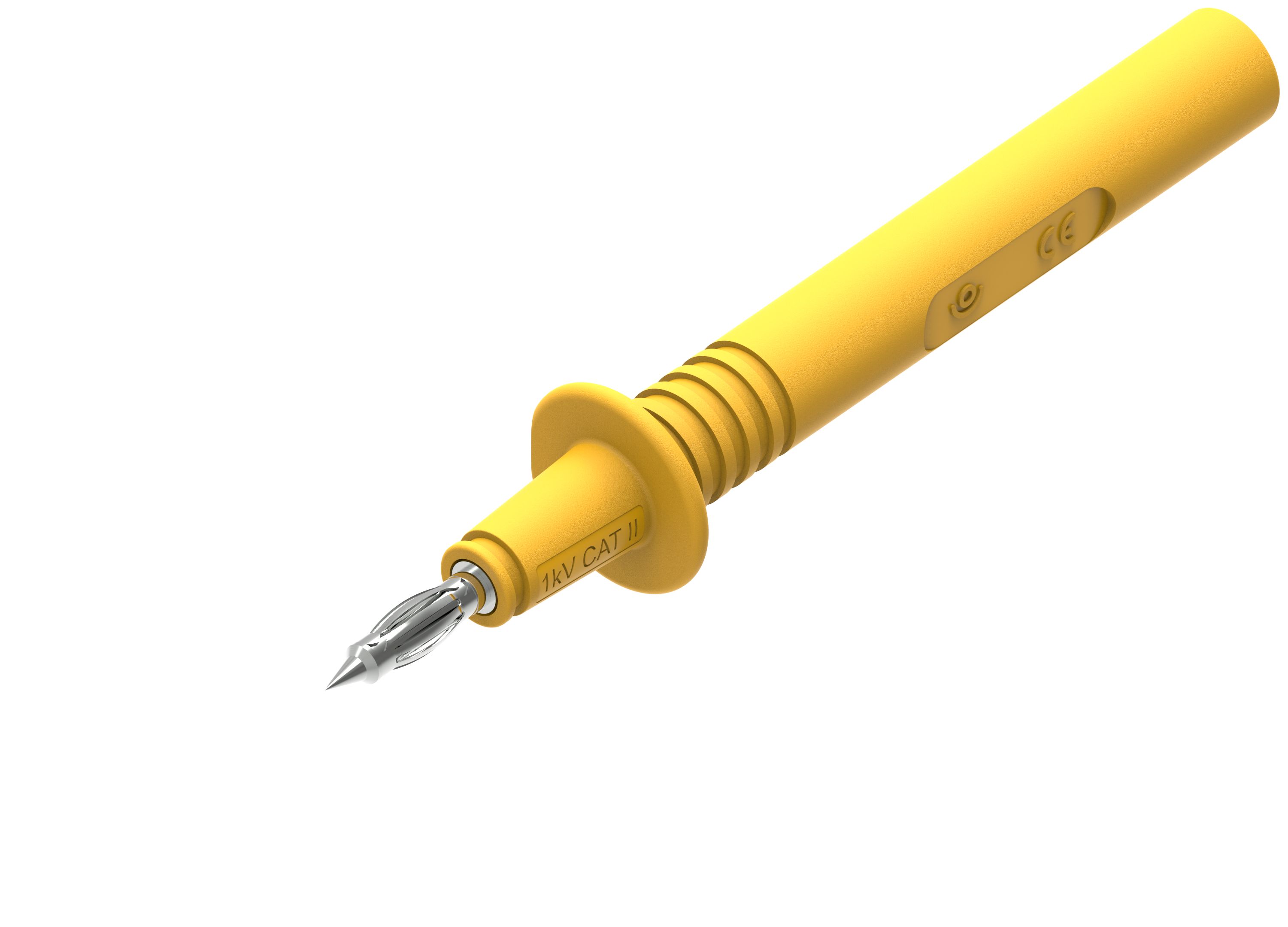 This is Narrow Test Probe 4mm Tip 1kV 36A manufactured by Electro PJP. The manufacturer part number is 404-IEC-J. The tip is 4mm in size. The product has a current rating of 36a. Moreover, the product has a nominal 1kv voltage rating. It has a narrow type probe tip . It has a decent yellow colour. It has a needle point probe type of test probe .