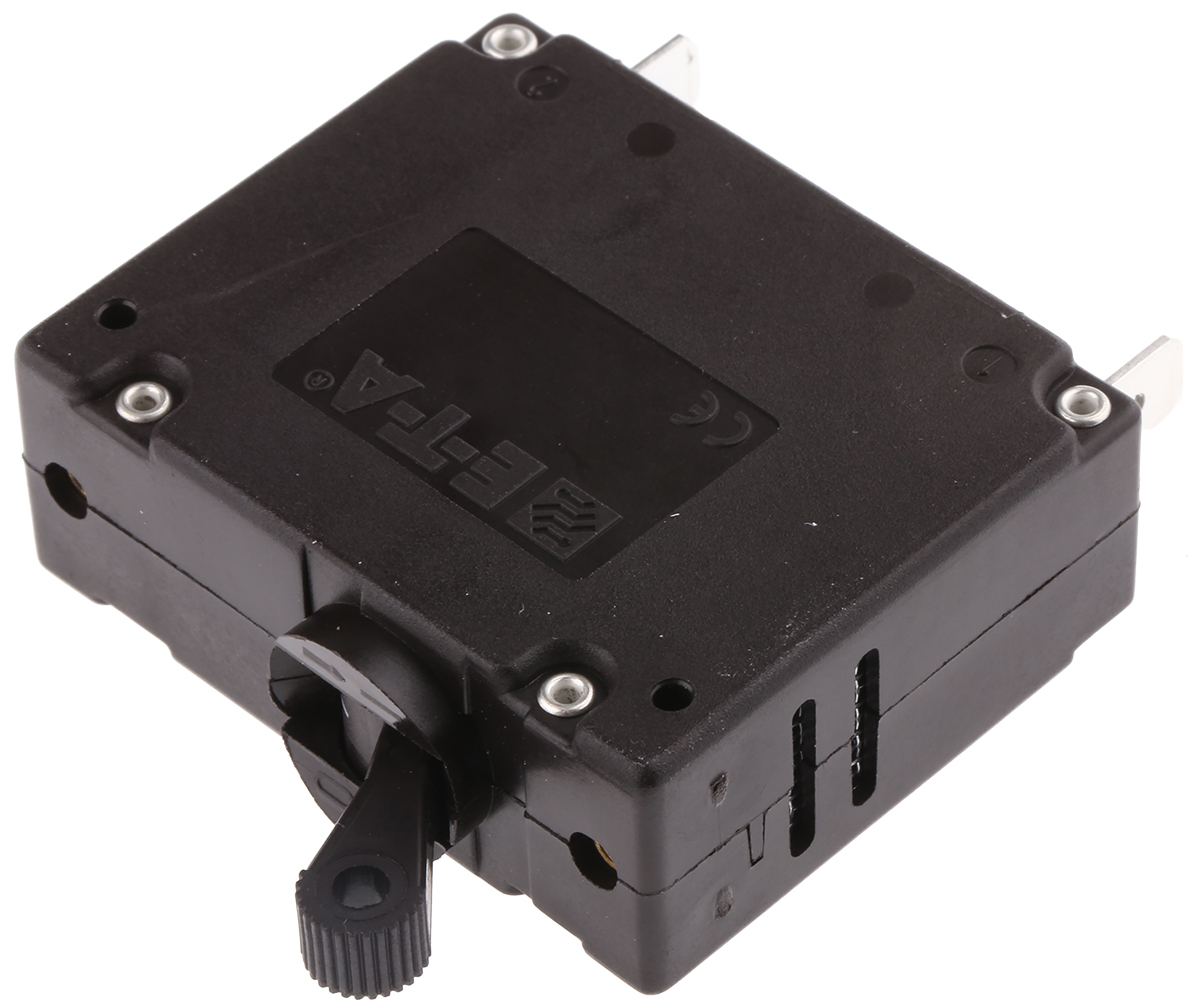 This is 15A 1 Pole Thermal Magnetic Circuit Breaker 80V dc 8340 manufactured by ETA. The manufacturer part number is 8340-F410-P1M1-A3H0-15A. The product has a current rating of 15a. Moreover, the product has a nominal 80v dc voltage rating. The product 8340, is a highly preferred choice for users. This is a type of thermal magnetic circuit breaker, a circuit breaker with unique features. The product is available in flange mount style. Furthermore, the product is 19mm wide. It has equipped with 1 poles. It is a toggle switch reset actuator.