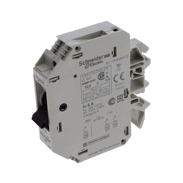 This is 4A 1P Pole Thermal Magnetic Circuit Breaker 277 V ac 415 V ac GB2 manufactured by Schneider Electric. The manufacturer part number is GB2CB09. This is a type of thermal magnetic circuit breaker, a circuit breaker with unique features. The product has a current rating of 4a. Furthermore, the product is 15mm wide. The product gb2, is a highly preferred choice for users. Moreover, the product has a nominal 277 v ac, 415v ac voltage rating. Furthermore, the product has an overall dimensions of 74 x 15 x 82mm. The product has 1 (dc) ka, 6 (ac) ka breaking capacity at maximum voltage rating. The product is available in din rail mount style. Applications Information involves control circuit. It has an overall length of 74mm. Similarly, the product has 82mm of overall depth. It has equipped with 1 poles. It is assigned with possible HTSUS value of 8536.20.0040. The product is rohs3 compliant. It is approved by csa c22.2 no 235, en 60947-1, en 60947-2, iec 60947-1, iec 60947-2 , ul1077. The product exhibits 277 v of AC voltage rating. In addition, it is reach unaffected. The schneider electric's product offers user-desired applications. It is a type of thermal magnetic breaker. 48 v of DC voltage rating. It has a long 5 weeks standard lead time. Additionally, the product's output is 4a. Its typical moisture sensitivity level is not applicable. The product is available in din rail configuration. In addition, bulk is the available packaging type of the product. The product carries toggle actuator. Is this product illuminated? none. The product is designated with the ear99 code number.