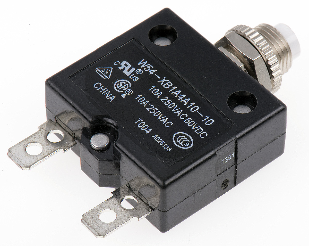 This is 10A 1 Pole Thermal Magnetic Circuit Breaker 250V ac W54 manufactured by TE Connectivity. The manufacturer part number is W54-XB1A4A10-10. The product has a current rating of 10a. Moreover, the product has a nominal 250v ac voltage rating. It utilises thermal tripping mechanism. The product w54, is a highly preferred choice for users. This is a type of thermal magnetic circuit breaker, a circuit breaker with unique features. Furthermore, the product is 14.60mm wide. It has equipped with 1 poles.