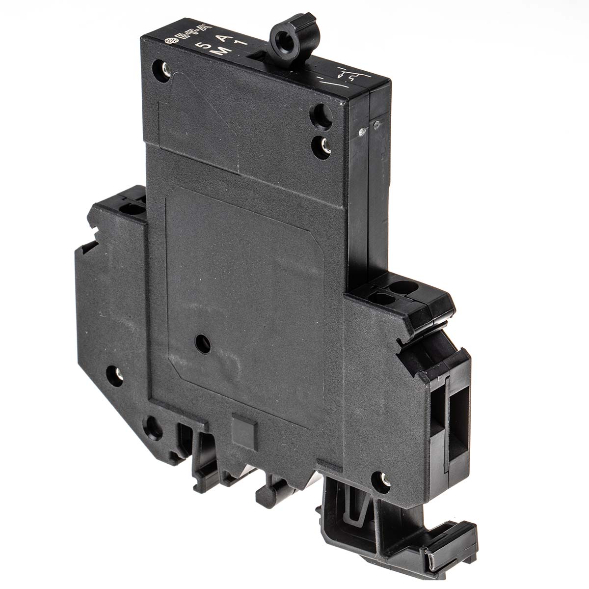 This is 2210 1 Pole Thermal Magnetic Circuit Breaker manufactured by ETA. The manufacturer part number is 2210-T210-K0M1-H121-5A. The product has a current rating of 5a. Moreover, the product has a nominal 277 v ac → 480v ac voltage rating. It utilises thermal-magnetic tripping mechanism. The product 2210, is a highly preferred choice for users. This is a type of thermal magnetic circuit breaker, a circuit breaker with unique features. Furthermore, the product has an overall dimensions of 83.5 x 12.5 x 88.5mm. The product has a rated DC voltage of 65 v dc. The product is available in din rail mount style. Furthermore, the product is 12.5mm wide. The product has a rated AC voltage of 277 v ac → 480 v ac. It has an overall length of 83.5mm. Similarly, the product has 88.5mm of overall depth. It has equipped with 1 poles. It is a toggle switch reset actuator.