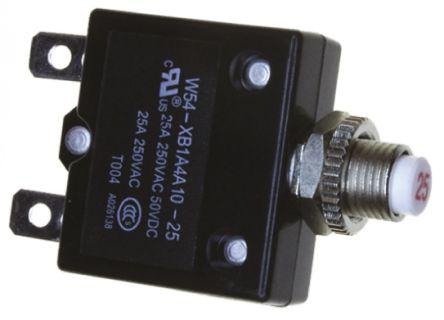 This is 25A 1 Pole Thermal Magnetic Circuit Breaker 250V ac W54 manufactured by TE Connectivity. The manufacturer part number is W54-XB1A4A10-25. The product has a current rating of 25a. Moreover, the product has a nominal 250v ac voltage rating. It utilises thermal tripping mechanism. The product w54, is a highly preferred choice for users. Furthermore, the product is 0.575in wide. It has equipped with 1 poles.