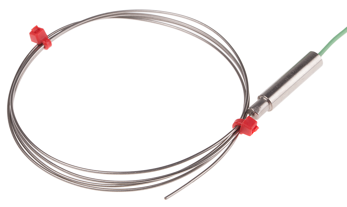 This is K Type Thermocouple Stainless Steel Probe 1m Length 1mm diameter -100°C → +1100°C manufactured by RS Pro. The manufacturer part number is 787-7703. The product complies with all safety standards, such as iec, rohs compliant. Its probe diameter is about 1mm . The length of the probe is 1m. Additionally, its thermocouple is of k type . The product is designed with a bare wire tail termination. It senses +750°c maximum temperature . Furthermore, the cable has a 1m of length. The probe is manufactured from robust stainless steel materials.