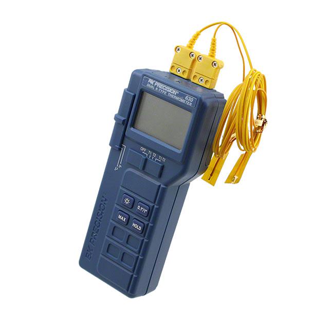 This is manufactured by B&K Precision. The manufacturer part number is 630. The probe is basically a k probe. It is assigned with possible HTSUS value of 9025.19.8085. The product is not applicable. It carries thermocouples (2) input type. It provides temperature display in c°/f° formats. It comes in handheld configuration. In addition, it is reach unaffected. The product is also supplied with battery. The product's typical temperature range incudes -58 ~ 2000°f (-50 ~ 1300°c). The b&k precision's product offers user-desired applications. Its typical moisture sensitivity level is not applicable. The battery has a 9v cell size. It features a remarkable lcd display. The splendid features of the product include backlight, hold, max. In addition, box is the available packaging type of the product. The product is designated with the 3a992a code number.