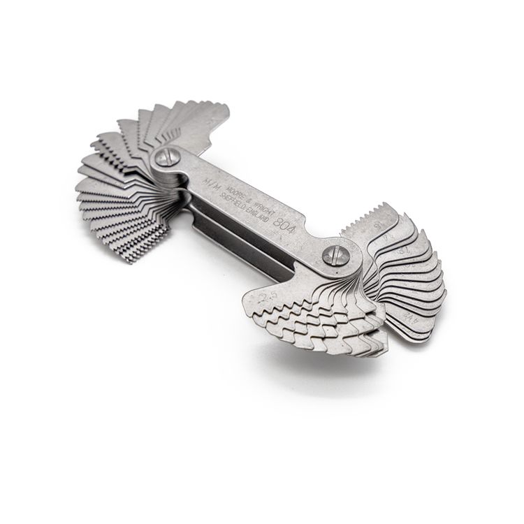 This is 49 Blades Thread Pitch Gauge Whitworth/Metric thread type manufactured by Moore & Wright. The manufacturer part number is 804. Additionally, it is 0.4, 0.5, 0.7, 0.8, 0.9, 0.75, 1.0, 1.25, 1.50, 1.75, 2.0, 2.5, 3.0, 3.5, 4.0, 4.5, 5.0, 5.5, 6.0, 6.5, 7.0 in set sizes . With 7mm largest metric measure . Moreover, it has a/an whitworth/metric type thread . The included number of blades is/are 49 .