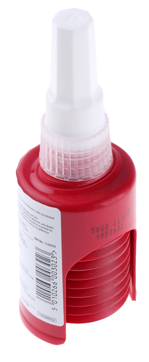 This is 5800 Red Threadlocking Adhesive 1 week Cure 50 ml manufactured by Loctite. The manufacturer part number is Loctite 5800 50ml. It is assigned with a trade name of loctite 5800. Its actual cure time is about 24 h . The viscosity measurement of the product is 150000mpa/s . The product has -55 → +180 °c of operating temperature range. The product is in liquid form . It has a decent red colour. Its odour is characteristic . Applications Information involves surface gasket. The package is a sort of bottle. Whereas, the minimum operating temperature of the product is -55°c. Its package size is approximately 50 ml . The product also provides special features, such as anaerobic. It has a maximum operating temperature of +180°c. It contains dimethacrylate ester chemical composition .