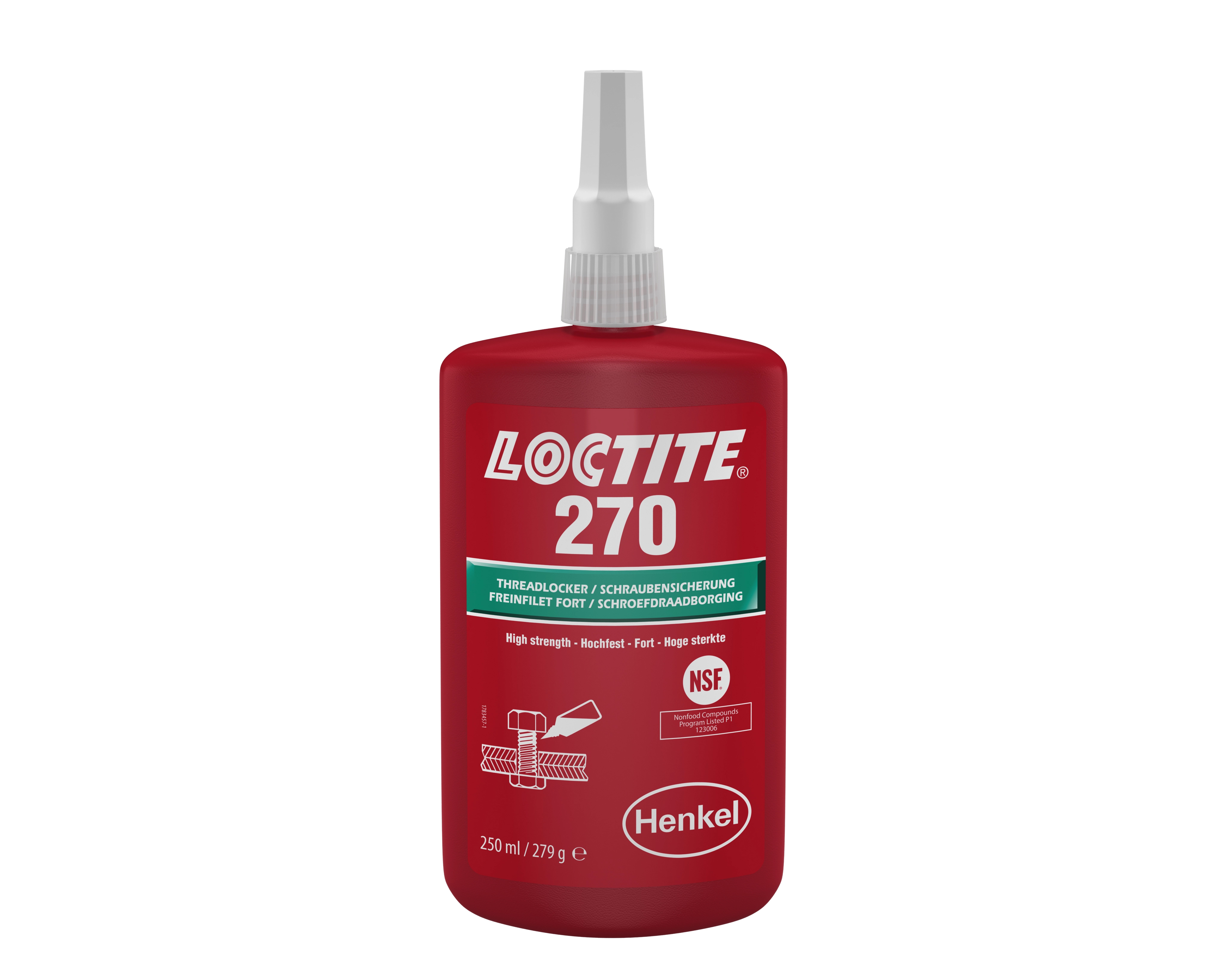 The Loctite 270 is a high‑strength anaerobic threadlocking adhesive engineered for permanent locking of threaded assemblies in demanding industrial environments. Housed in a 250ml bottle, this liquid sealant supports temperature extremes from –55°C to +180°C, offering robust performance for applications that must resist vibration, thermal expansion, and harsh conditions.