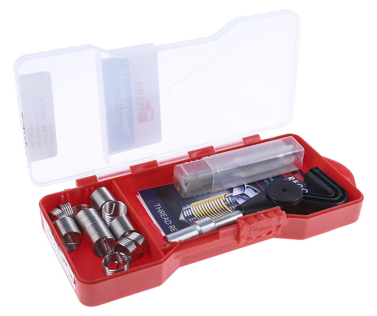 This is M14 Thread Repair Kit manufactured by Recoil. The manufacturer part number is 38142. It has a thread size range of m14 x 1.25 . Moreover, it has m14 inserts (x10); tap; installation tool set contents .