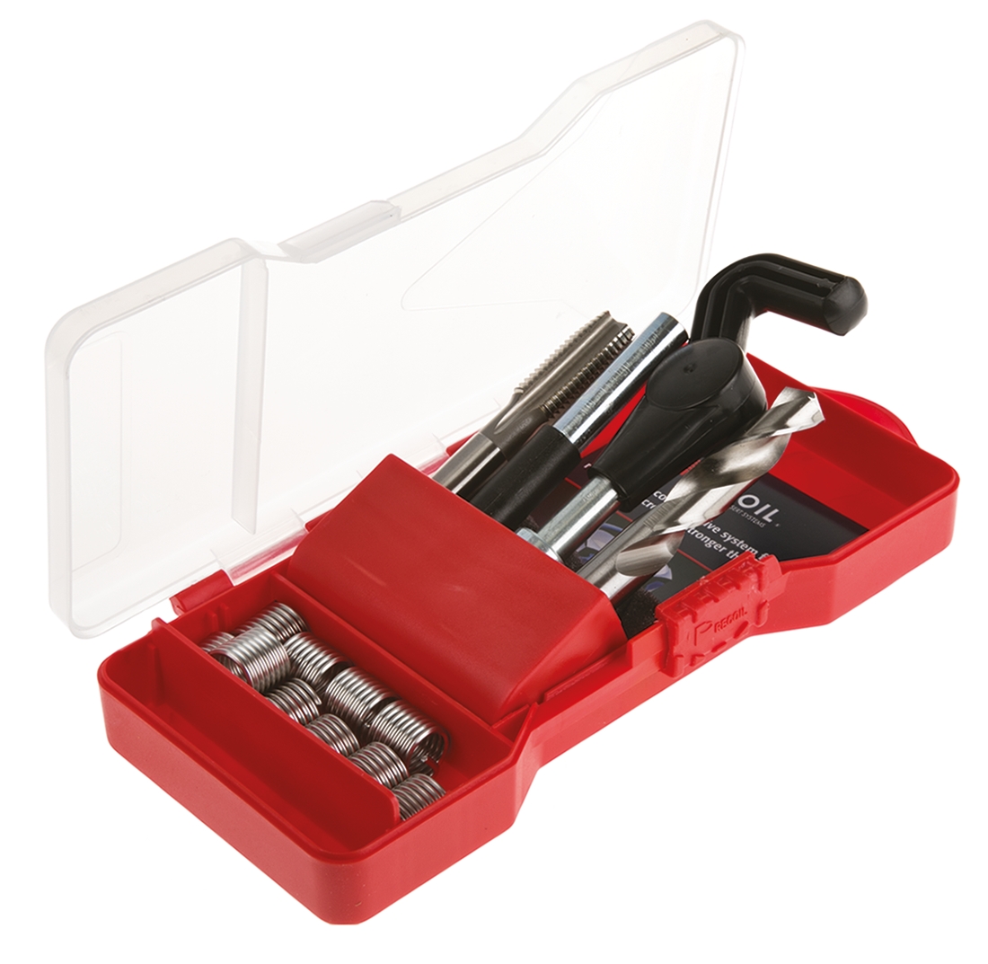 This is 13 piece M12 x 1.75 Thread Repair Kit manufactured by Recoil. The manufacturer part number is 35128. It has a thread size range of m12 x 1.75 . Moreover, it has m12 inserts (x10); magnetic tang break tool; combo tap and installation tool; drill set contents . The product consists of 13 pieces.