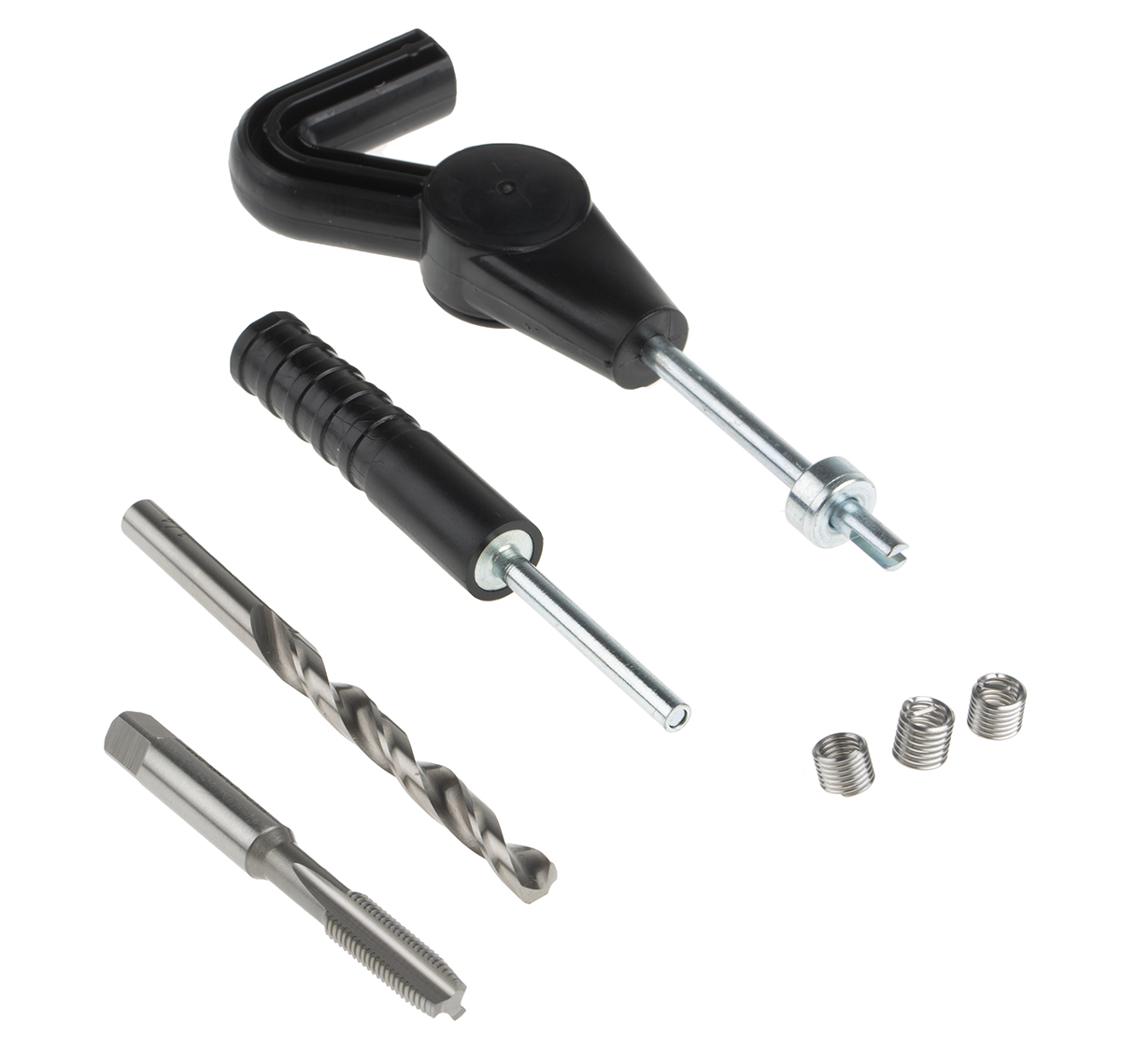This is 18 piece M6 x 1 Thread Repair Kit manufactured by Recoil. The manufacturer part number is 35068. It has a thread size range of m6 x 1 . Moreover, it has m6 inserts (x15); magnetic tang break tool; combo tap and installation tool; drill set contents . The product consists of 18 pieces.