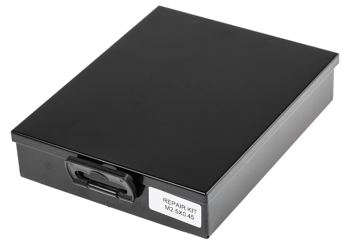 This is 19 piece M2.5 Thread Repair Kit manufactured by RS Pro. The manufacturer part number is 917-2517. It has a thread size range of m2.5 x 0.45 . Moreover, it has 2.6mm hss drill piece, installation mandrel, m2.5 x 0.45 hss sti tap, tang break-off tool, thread inserts: 5 each of 1.0d; 1.5d; 2.0d set contents . The product consists of 19 pieces.