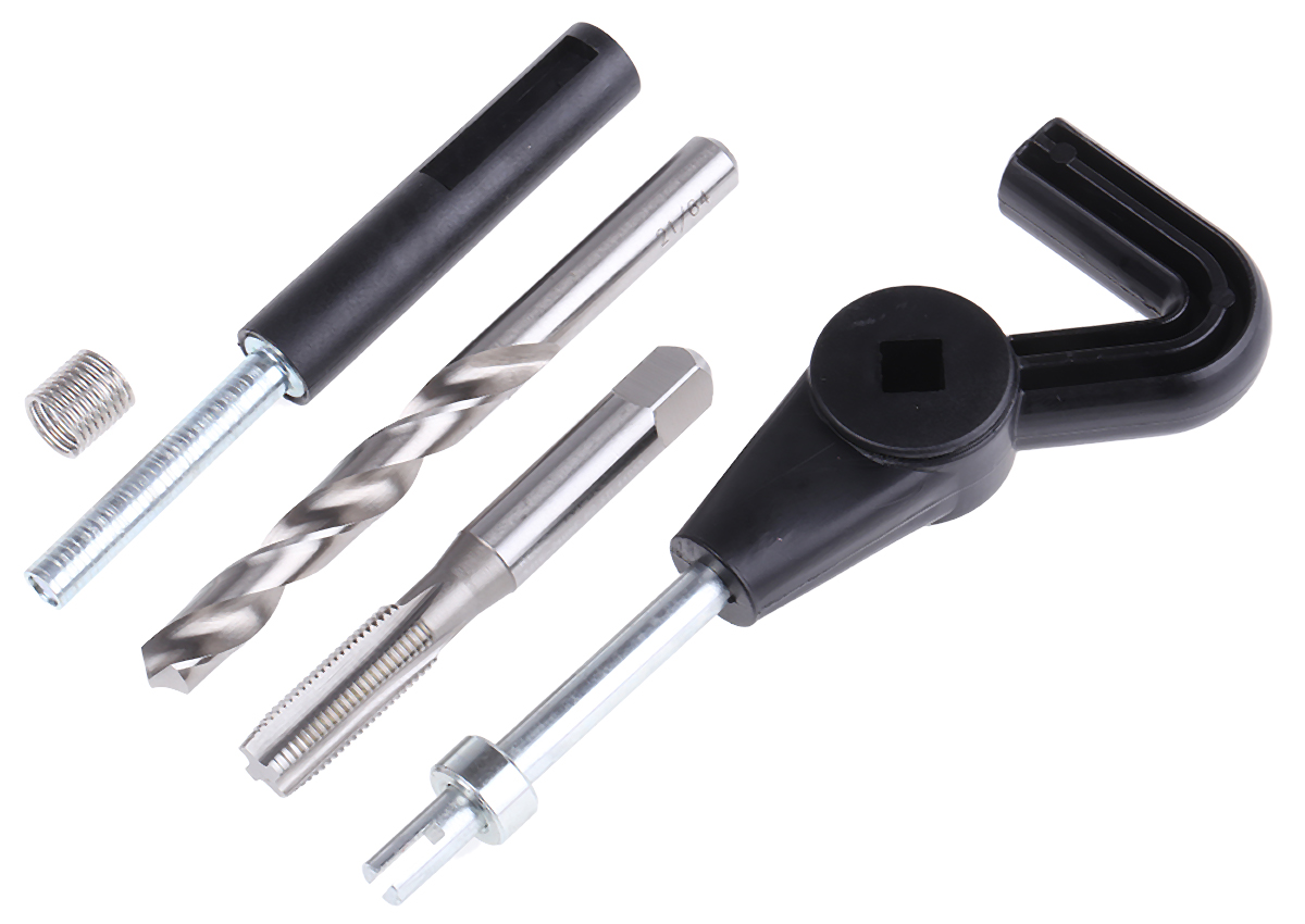 This is 18 piece 5/16-24 Thread Repair Kit manufactured by Recoil. The manufacturer part number is 34058. It has a thread size range of 5/16-24 . Moreover, it has 5/16 in unf inserts (x15); magnetic tang break tool; combo tap and installation tool; drill set contents . The product consists of 18 pieces.