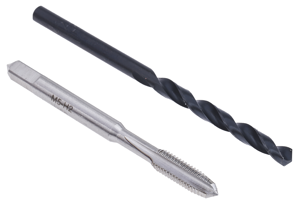This is 2 Piece HSS Tap & Drill Set M5 manufactured by RS Pro. The manufacturer part number is 749-5691. It has a/an iso shank standard . It has a typical thread size of m5. It has a hand tap . It has a plain type shank . The threaded is a metric coarse standard. The product is made from highly stable and reliable hss. It has an overall length of 58mm. This is a type of threading tap set, a set with user-desired tools. In addition, its shank diameter is about 4mm . Moreover, the product is 0.8mm. Its thread direction is to the right hand . It comes in tap and drill set configuration. The product consists of 2 pieces.