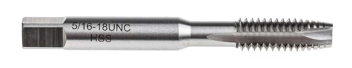 This is HSS 5/16-18 Spiral Point Thread Tap 72 mm length manufactured by RS Pro. The manufacturer part number is 455-914. It has a/an iso shank standard . It has a typical thread size of 5/16-18 unc. It has a manual or machine tap . It has a plain type shank . The threaded is a unc standard. The product is made from highly stable and reliable hss. This is a type of threading tap, a set with user-desired tools. In addition, its shank diameter is about 8mm . It has an overall length of 72mm. Its thread direction is to the right hand . It comes in spiral point configuration. Furthermore, the pitch of the thread is 18tpi. The product consists of 1 pieces.