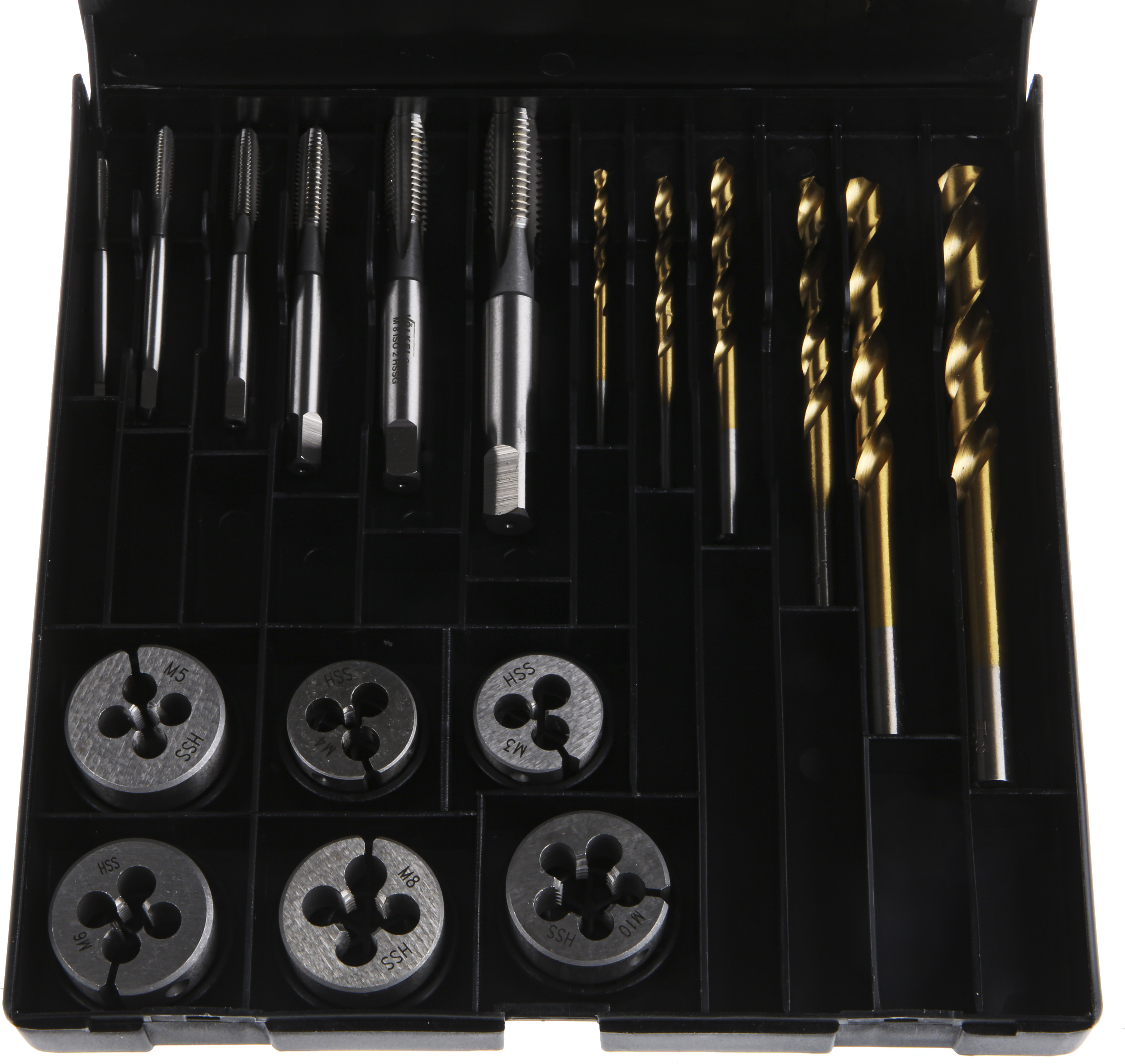This is HSS Tap & Drill Set M3 to M10 manufactured by RS Pro. The manufacturer part number is 506-4267. This is a type of threading tap set, a set with user-desired tools. It has a typical thread size of m3 → m10. The product is made from highly stable and reliable hss. The product consists of 18 pieces.